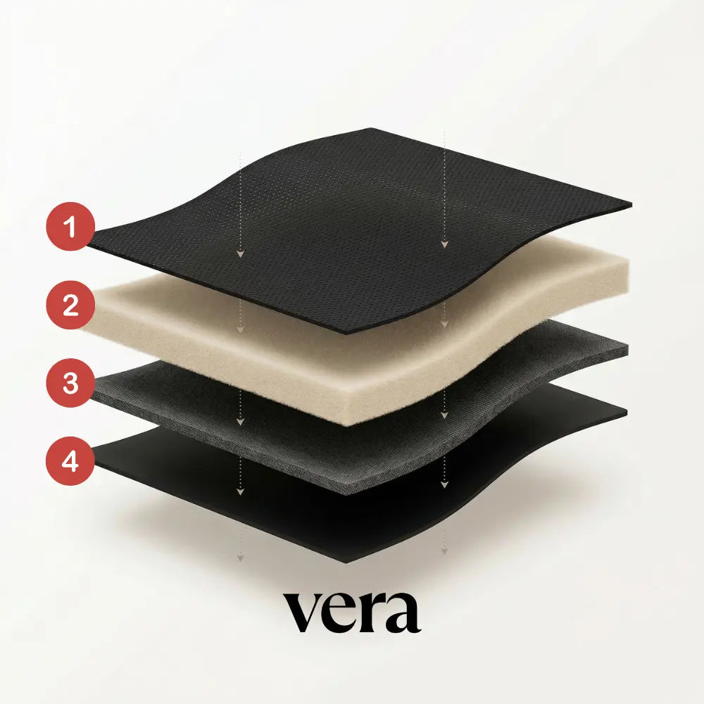 Vera's four-layer system catches those moments instantly, so you can move through your day without bracing yourself every time.